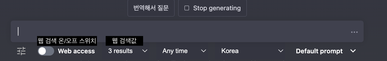 다운로드하셨다면, 검색 창 하단에 있는 버튼을 켜주신 다음, 질문을 이어나가시면 됩니다.